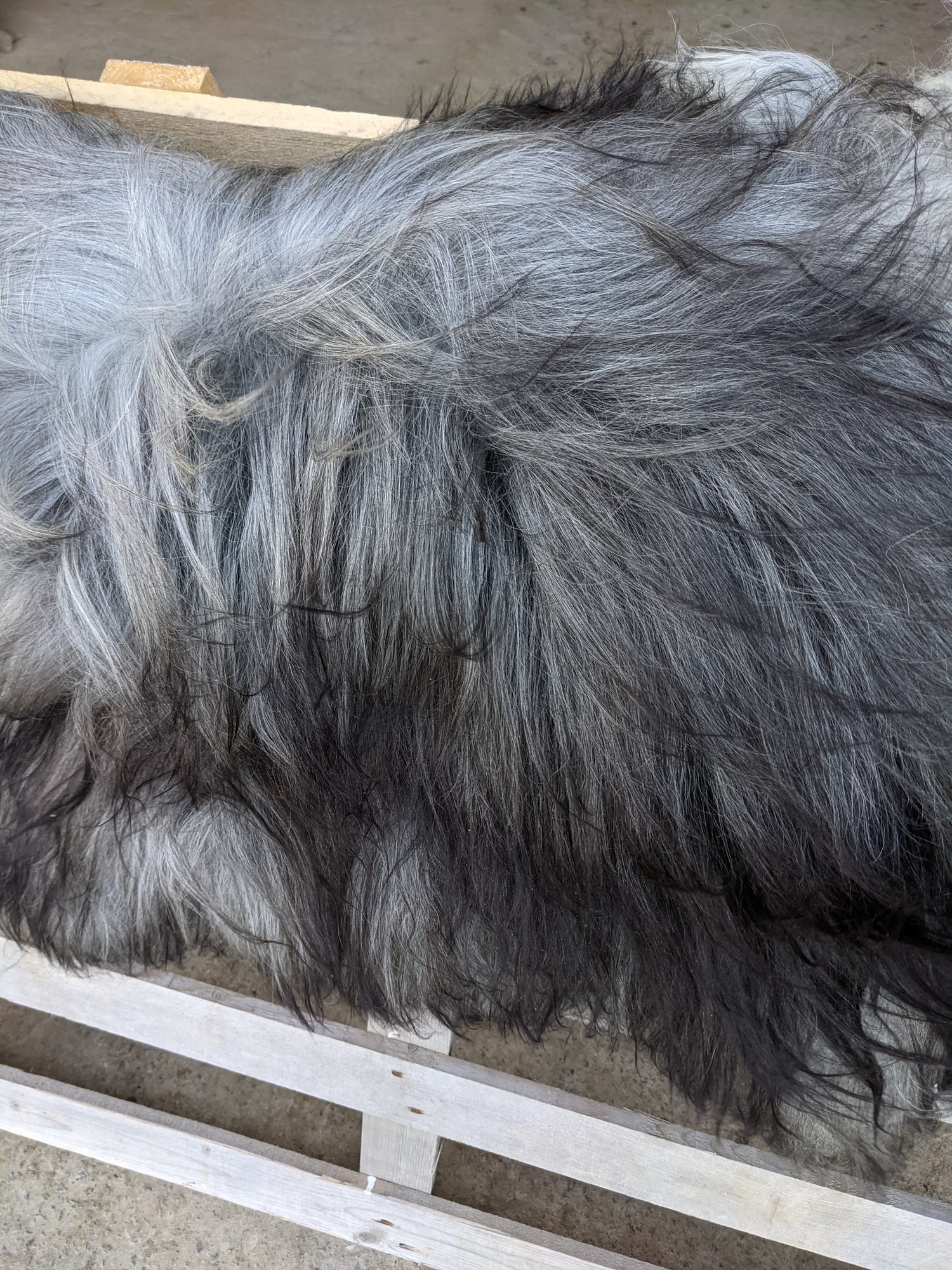 Each one is completely unique, the colour of the grey fleece varies from sheep to sheep. They are not dyed at all this is the natural variation of these Icelandic lambs.