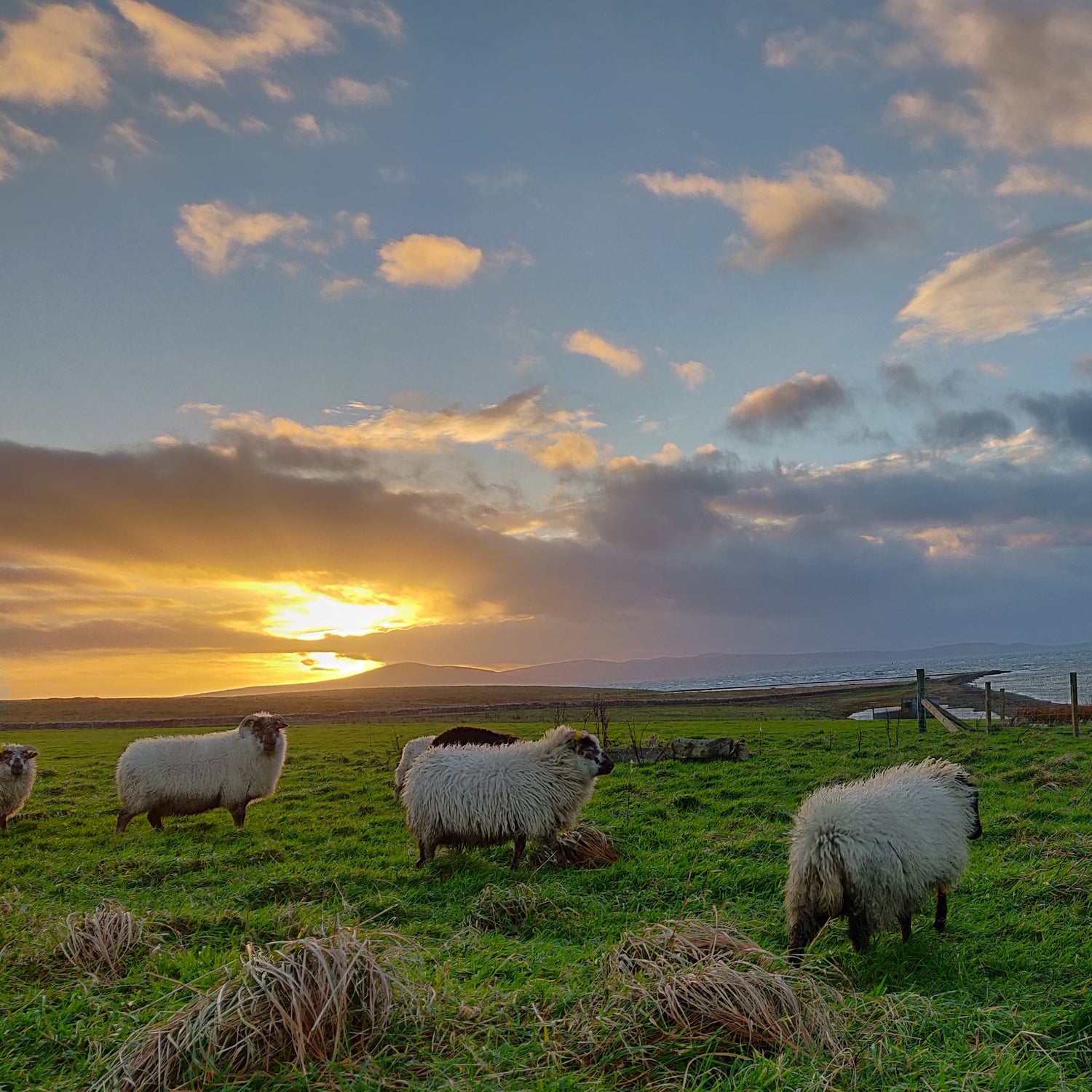 Our sheep are raised year round on natural Orkney pasture, which encourages growth of a thick warm fleece with a longer staple length.